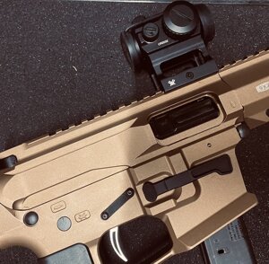 billett 7075, manetta standard o laterale sia reciprocante che non reciprocante, Minuterie totalmente a tolleranze mil-spec, sedi scatti e perni alesate a tolleranze mil-spec. Posizioni picatinny speriore con marcature laser, anche su colori fuoricstandard.